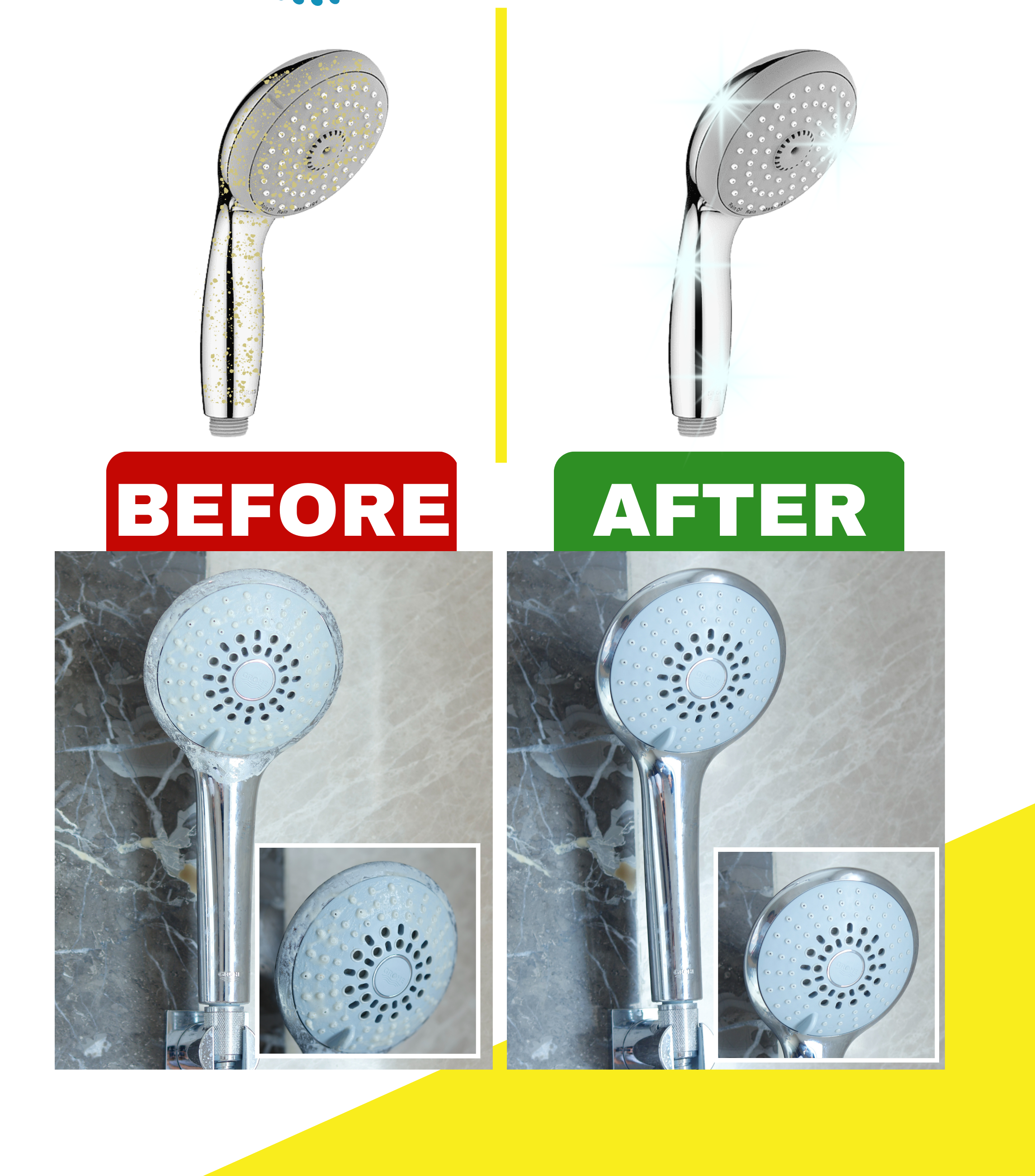 HOW ? With Powerful Cleaning formula, SCKOUR TAP & SHOWER CLEANER is the Expert scale remover for hard water lime scale on your taps & showers ! It helps remove hard water stains, soap scum stains & limescale from taps & showers, and imparts a fresh and pleasant fragrance !